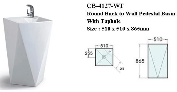 CB-4127-WT Square Back to Wall Pedestal Basin With Taphole