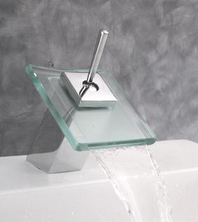 T-6506SQ Waterfall Square Basin Mixer with Transparent Glass (Joy Stick Handle)